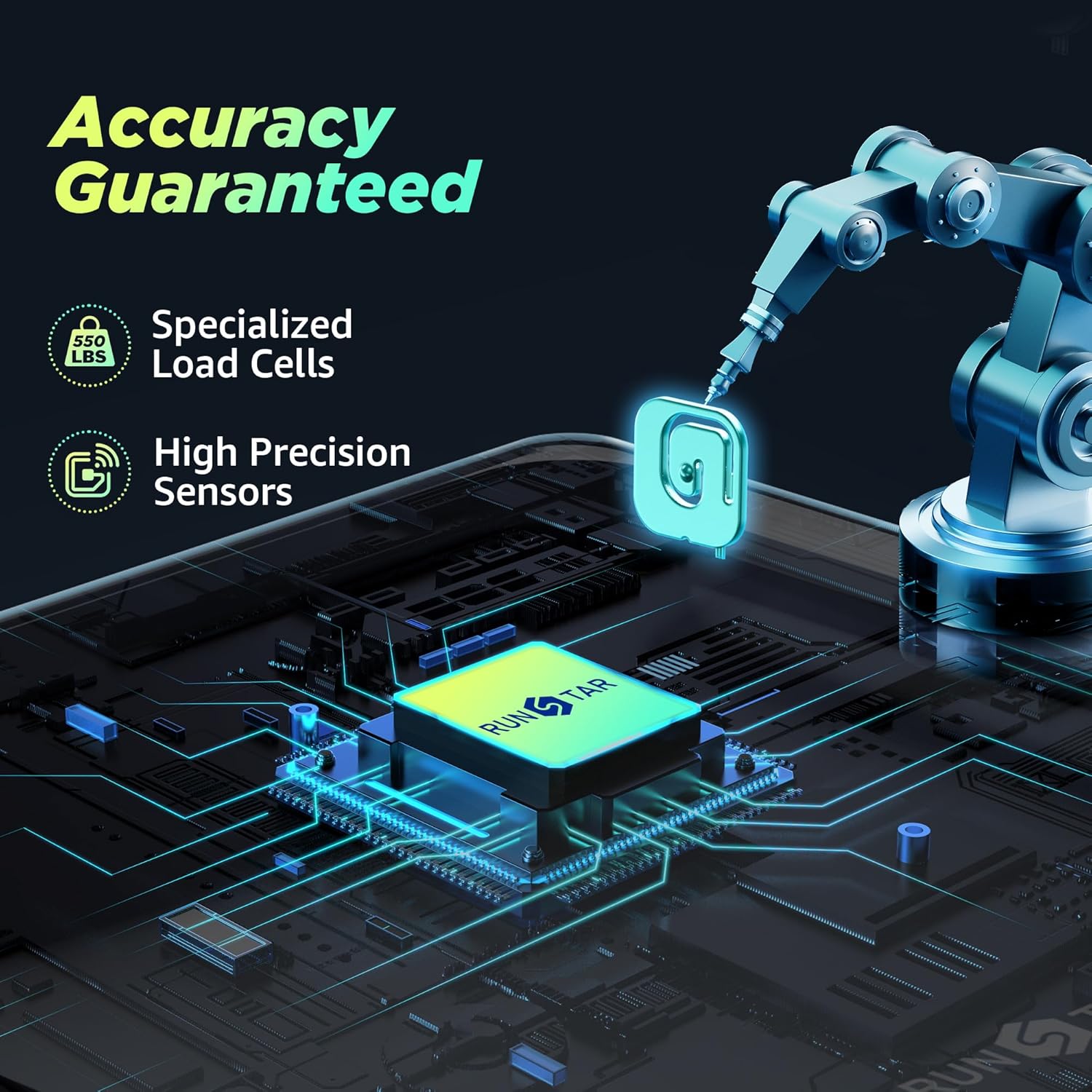- Where Capacity Meets Precision Equipped with specialized load cells, this RunStar digital scale up to an extra high capacity (550lb /250kg). Which have passed 100,000 times sensor performance tests, delivering accurate readings in 1lb /0.5kg increments