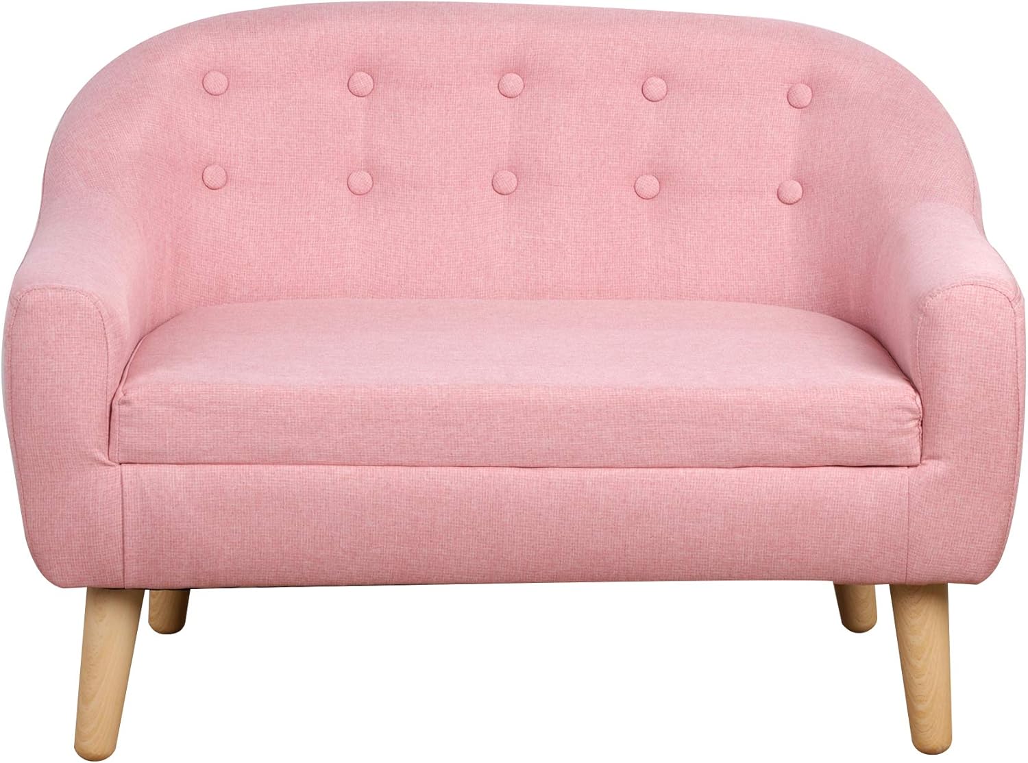 Acarra 2-Seat Kids Sofa Couch, Linen Fabric Upholstered Toddler Sofa with Wooden Frame, Lightweight Children’s Loveseat for Ages 3–7, Pink