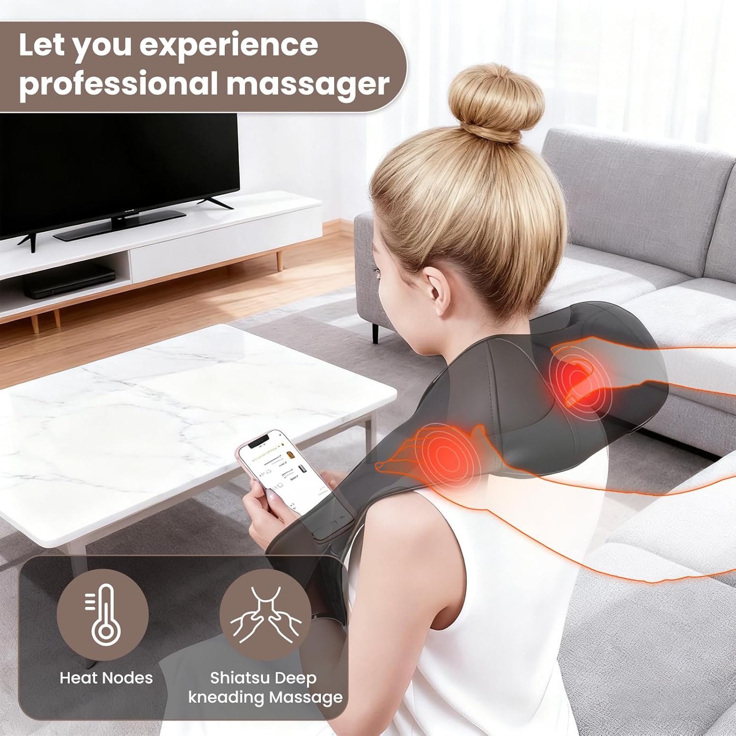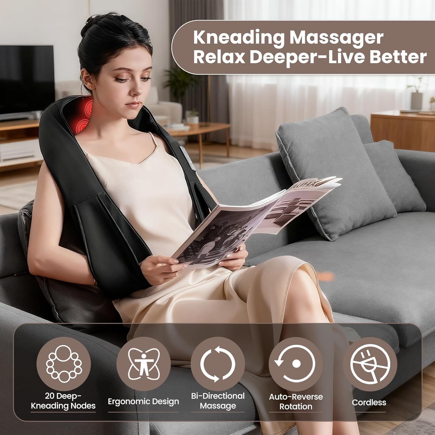 - 【Cordless Neck Massager for On-the-Go Relaxation】 Cordless Neck and Shoulder Massager with Heat is built with a rechargeable lithium-ion battery, supporting wireless use that frees you from power outlets—ideal for neck pain relief at home, in the office, or during travel.