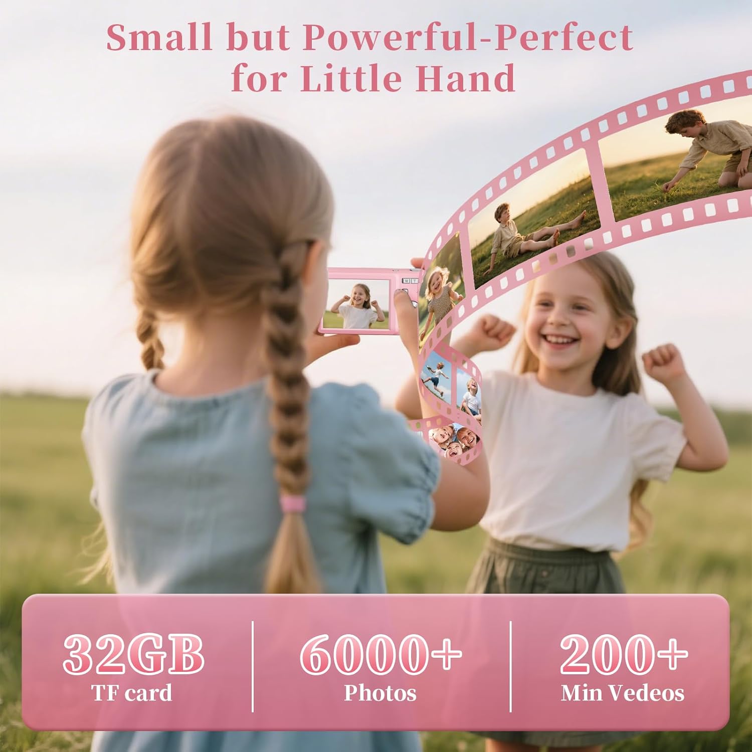 - Easy to Use with 30 Fun Filters: Designed for little hands, this small digital camera has an ergonomic build, intuitive buttons, kid-friendly menus, and a large LCD screen—ideal for kids 5-13+. Store thousands of adventures on the included 32GB card, then one-click transfer to PC via USB cable. Best of all, 30 built-in filters (retro, black-and-white, warm tones, etc.) let kids unleash creativity. Perfect for parties, Halloween, Christmas, or any event—they’ll craft unique photos effortlessly.