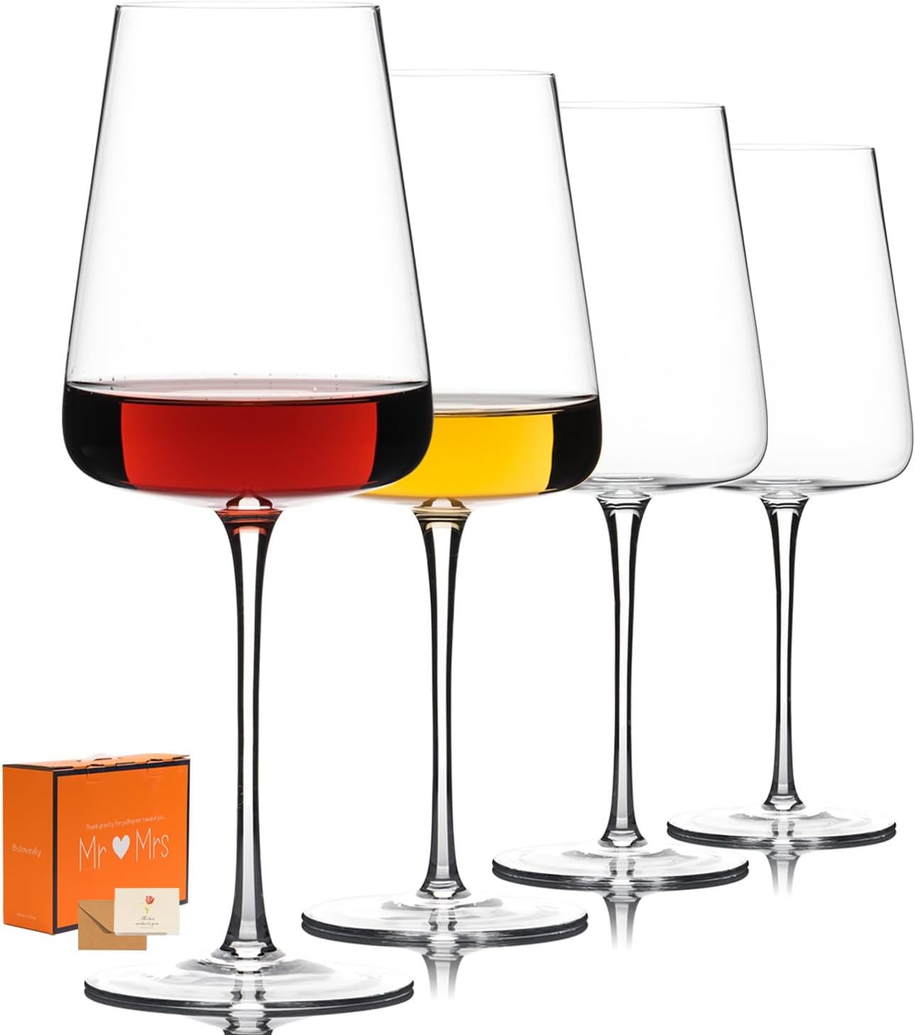 - 100% Leadless Crystal: From the Bulovedly brand, it uses high-quality crystal, resulting in a super-thin stem and ultra-thin (delicate) body. It is bright and lightweight. Its sparkling appearance, resonant sound, and pleasant grip make it an ideal gift for friends, couples, anniversaries, birthdays, Christmas, or for personal preservation over the years,wine glasses set of 4,home and kitchen,large wine glasses,copas de vino de cristal elegantes,unique wine glasses,stemmed wine glasses,large wine glasses,large wine glasses with stem,kitchen