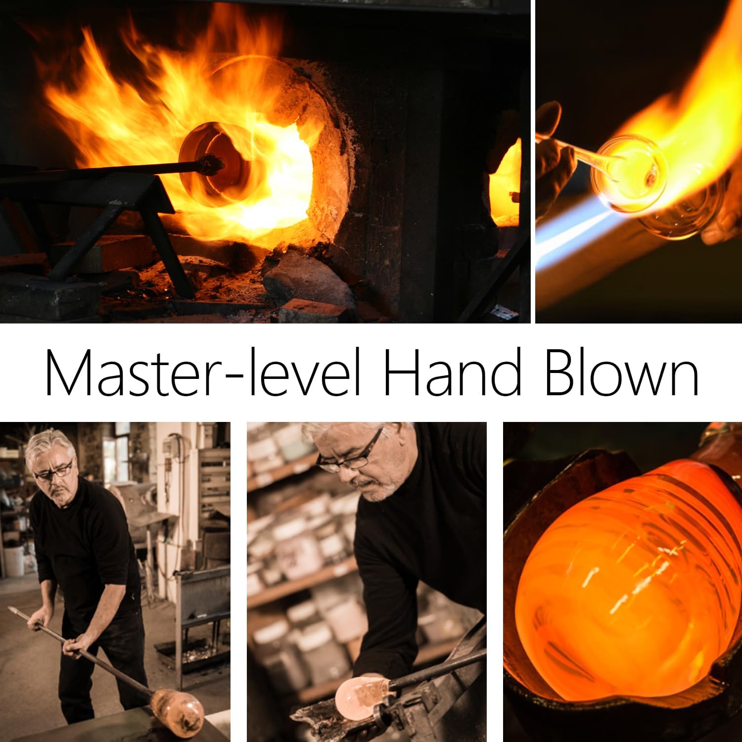 - Handcrafted — Each wine glass is hand-blown by an experienced master craftsman, by whom the edge is delicately polished and cut for a thin and smooth appearance to provide a better sense of touch for your lips and enhance the quality and flavor of the wine.
