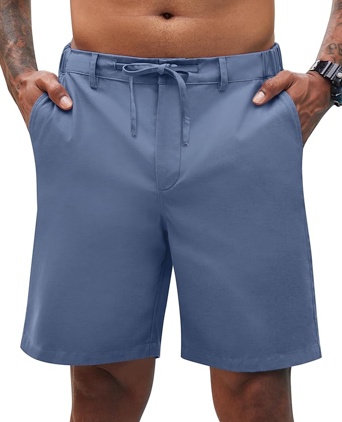 Linen Shorts for Men Casual Elastic Waist Drawstring Summer Beach Linen Shorts Men Dress Shorts