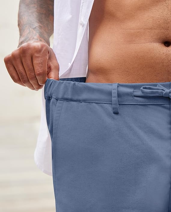 • Casual Linen Shorts Men: These men’s casual summer beach shorts are made of skin-friendly and high-quality material. The lightweight and breathable material reduces friction and discomfort, keeping you cool and relaxed even in humid and hot conditions