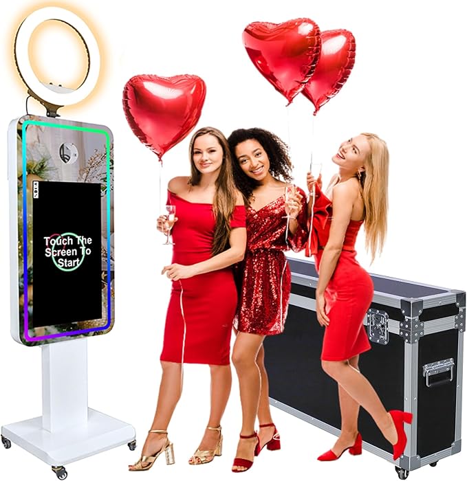 - 📸【WHAT MAKES for MIRROR PHOTO BOOTH PLATFORM IN HUGE DEMAND】 Mirror Photo Booth renders an unparalleled photo and video experience for you, your clients, and their party guests, it is definitely the best helper to increase the fun of the party.You can easily record your wonderful moments in all directions, share them on social platforms and create amazing images, videos, and live streaming videos. Suitable for various party occasions!