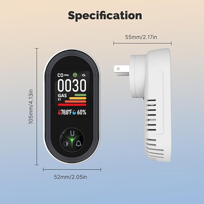 - Built-In Temperature & Humidity Monitoring – More than just a gas detector — continuously monitors indoor temperature (14℉–122℉) and humidity (0–95% RH) to support a healthier living environment.