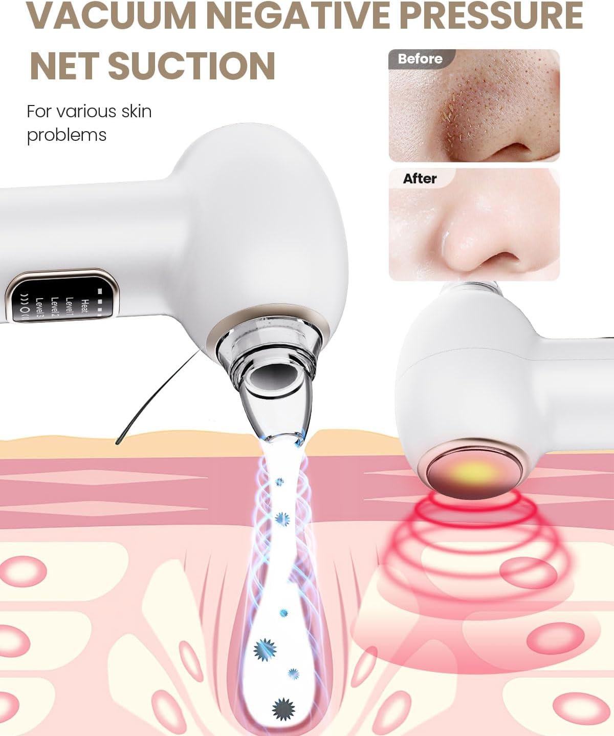 - MULTI-LEVEL SUCTION: Features 3 adjustable suction power levels to effectively remove blackheads, dead skin, and oil from different skin types
