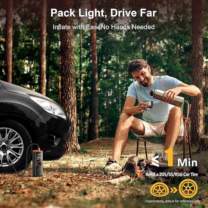 - 【3X FASTER INFLATION】This portable air compressor use top materials, serves as a portable tire inflator for cars, trucks, SUVs, motorcycles, and bicycles. The car air pump can efficiently inflate your vehicle’s tires within minutes with precision accuracy, reaching up to 150 PSI. This compact car air pump is designed to conveniently fit in your glove box or trunk.